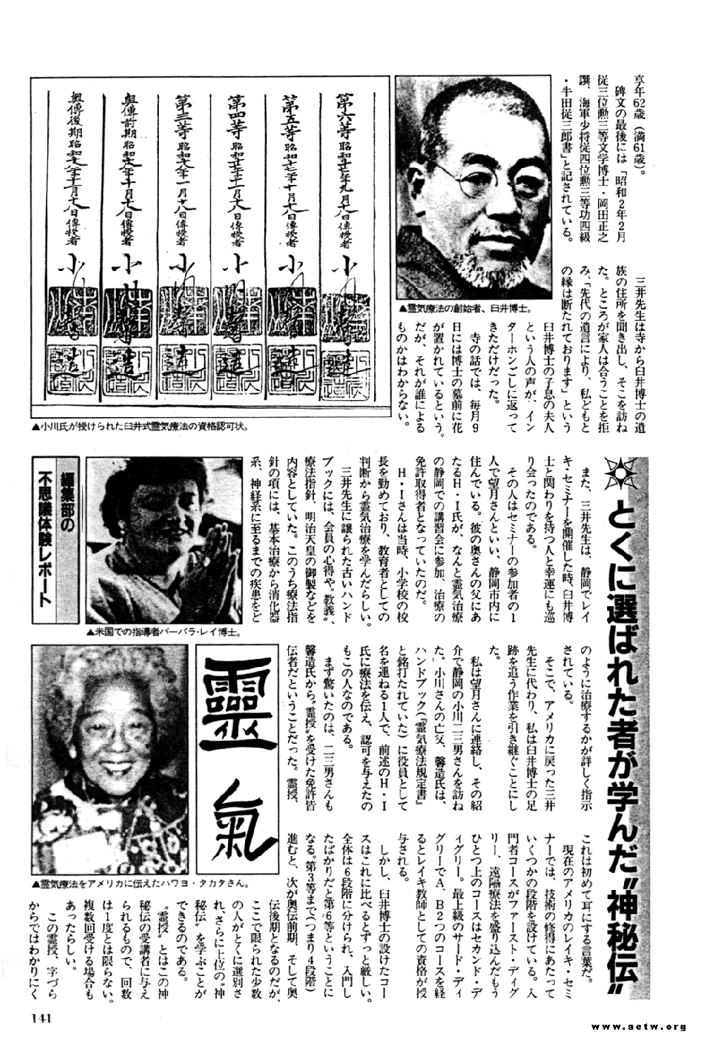 Also shown are pictures of Fumio Ogawa's Reiki certificates and