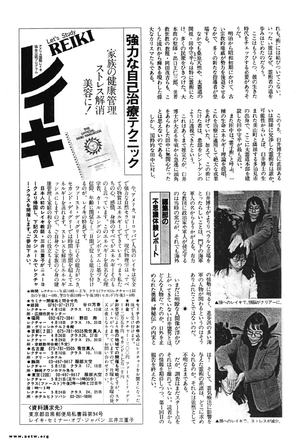 TRANSLATION OF A REIKI ARTICLE FROM A 1986 EDITION OF A JAPANESE